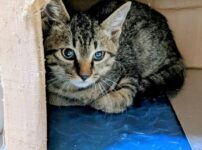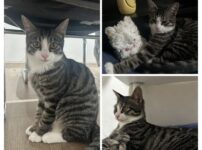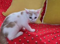 次回の譲渡会に参加します。 個別お見合い可。 生後4ヶ月。オス。サバ白。健診・ワクチン済み。去勢手術済。エイズ陽性。 最初はちょっとビビりさんですが、人慣れ進歩の早いコです。 母猫の不妊手術のために何度も捕獲を試みましたが、保護できずにいました。 その後、母猫が子猫の「くぅん」を連れて現れたため、「くぅん」を保護しました。 「トムコ」「くぅん」は兄妹です。