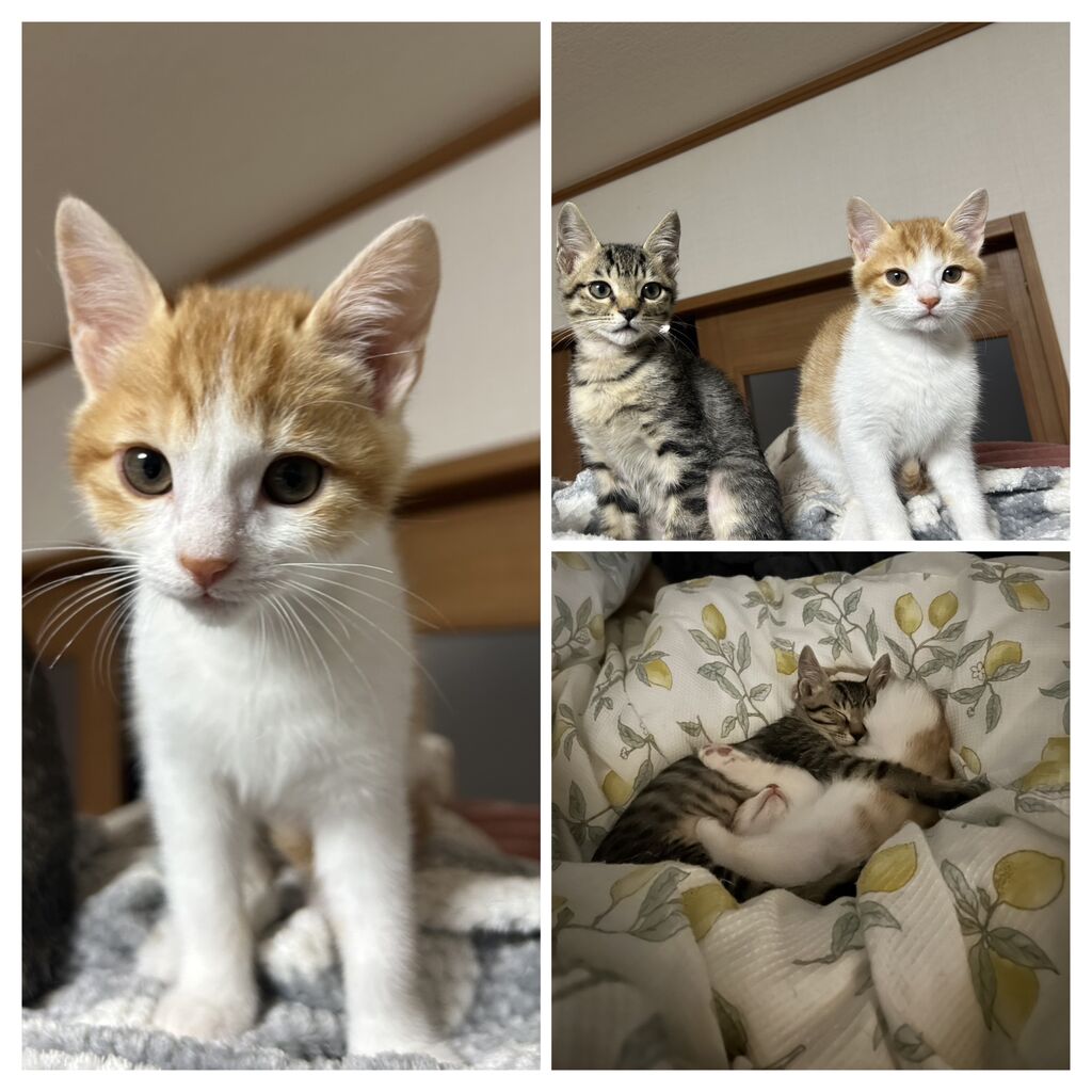 HOME > 猫 > 猫 仮名「しゃけ」くんの新しい飼い主さんを募集します。 投稿日:2025年11月16日 嶺南で保護しました。 生後3ヶ月。オス。茶白。 近日中にワクチン接種予定。 天真爛漫。甘えんぼ。食欲旺盛。最近のお気に入りはストーブの前です。 「しゃけ」と「こんぶ」は、子供、犬、猫、全然平気です。 毎晩2匹で抱き合って寝ているので、一緒に家族にしてくれる方でおねがいしたいです。 ご飯は、なんでも食べます。 Twitter Share Pocket Hatena LINE コピーする -猫