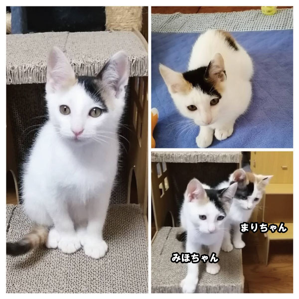 HOME > 猫 > 猫 仮名「みほ」ちゃんの新しい飼い主さんを募集します。 更新日:2025年12月7日 次回の譲渡会に参加します。 個別お見合い可。嶺南で保護しました。 生後2ヵ月半。メス。三毛。 健康診断済。ワクチン接種済。 嶺南の高齢者宅から保護しました。 活発でおもちゃ大好き。 良くあそびます。 「まり」ちゃんとは姉妹です。 2匹とも、触れますが抱っこは苦手です。 ※右上が黒いのが「みほ」ちゃんです。 Twitter Share Pocket Hatena LINE コピーする -猫
