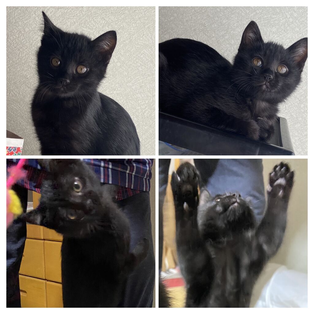 HOME > 猫 > 猫 仮名「タロー」くんの新しい飼い主さんを募集します 更新日:2025年12月7日 次回の譲渡会に参加します。 生後2ヶ月半。オス。黒。 健診済。ワクチン接種1回済。 お母さん猫が、倉庫の中でタローたち兄妹を出産し、子育てしていました。 好奇心旺盛で、どんな遊びも1番に飛びつきます。 膝の上でも、遊びに夢中のタロー君です。 仔猫なので、1日3回~4回の給餌をお願い致します。 「タロー」君「ジロー」君「クマゴロー」君は兄弟です。 Twitter Share Pocket Hatena LINE コピーする -猫