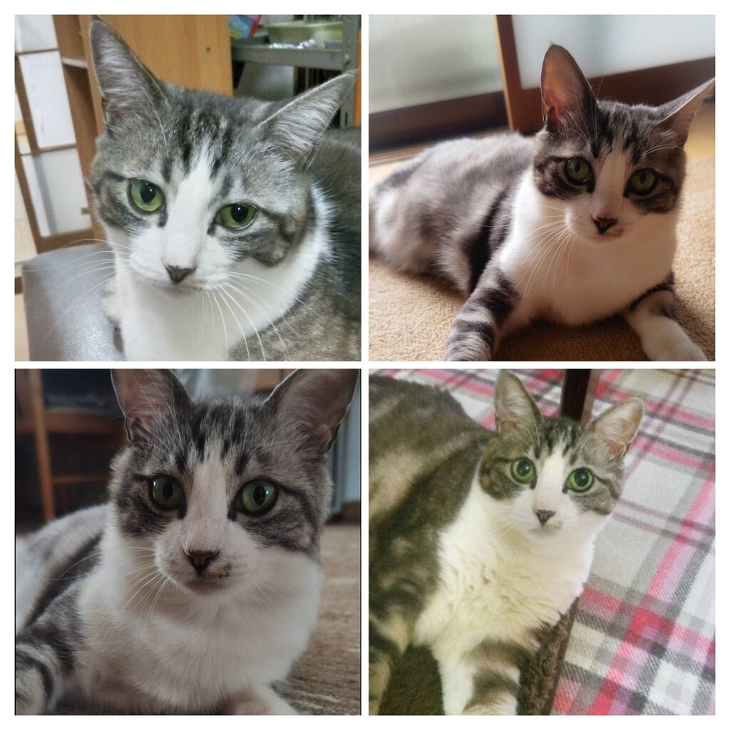 約5~6才。メス。グレー×白